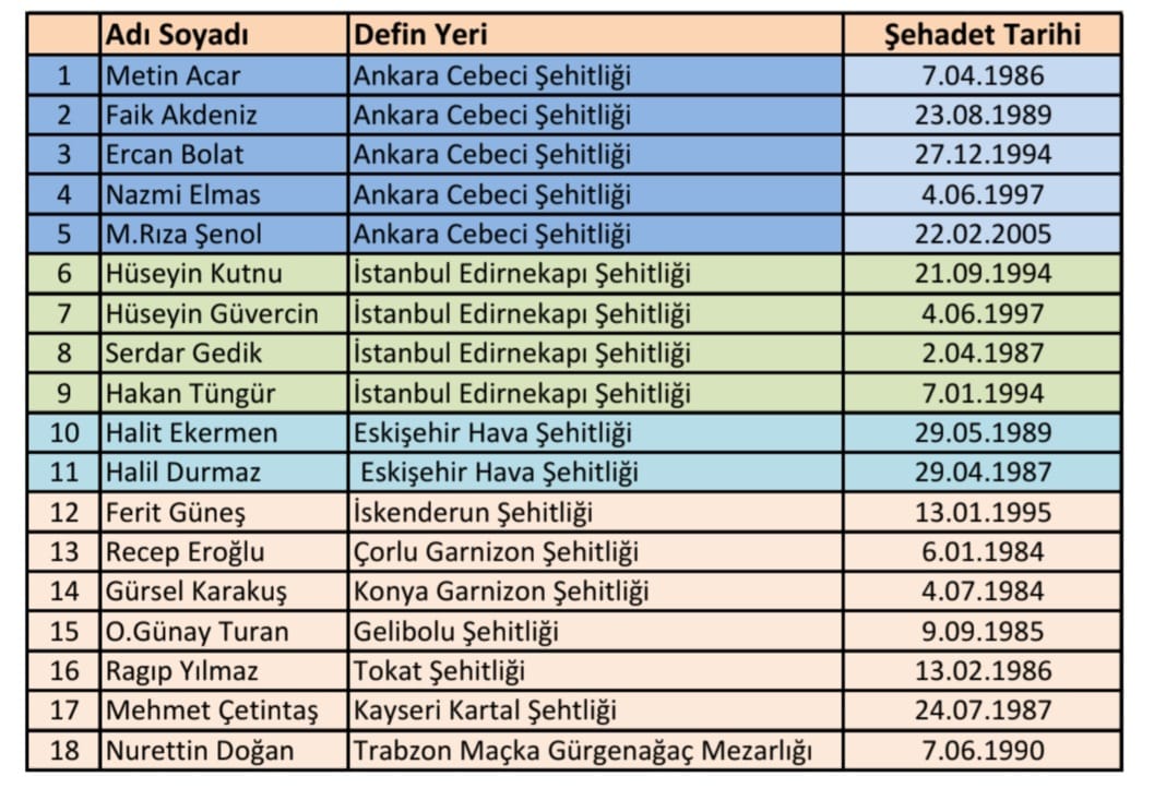 b. Çanakkale ve Edremit'de ki devrelerimiz; Muammer Eçier, Ramazan Saatli, İrfan Öner, Sami Sağer, İsmail Hakkı Aygün ve Mehmet Ali İkbal'e,
