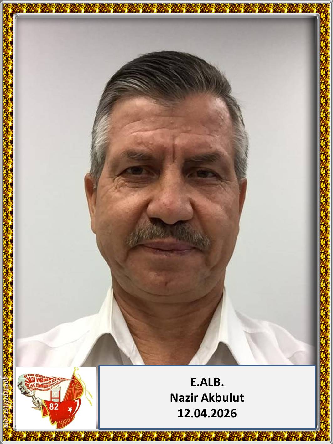 Sevgili arkadaşlarım; Devre arkadaşımız, rahmetli Nazir Akbulut'un vefatından ve defnedildiği ana kadar, tüm faaliyetler sevgili arkadaşımıza layık bir şekilde icra edilmistir. Ailesi ve yakınları özellikle memnuniyetlerini ifade etmişlerdir. Bunda, yönetim kurulumuz başta olmak üzere, cenaze tören ve faaliyetlerine katılan ve katkıda bulunan tüm devrelerimizin de etkisi çok büyük olmuştur. Rahmetli devre arkadaşımız Nazir Akbulut'a da Allah'tan rahmet dileriz, mekanı cennet olsun inşallah. Saygı ve selamlarımızla 1982'liler Derneği ------------------------------------------------------------------------------------------------------------------ Devre arkadaşımız E.Topçu Albay Nazir Akbulut uzun süredir yoğun bakımda yattığı hastanede vefat etmiştir. Tüm sevenlerinin ve devremizin başı sağolsun. Allah rahmet eylesin mekanı cennet olsun inşallah. Sevgili arkadaşımızın cenazesi İstanbul Başakşehir Merkez Camiindeki ikindi namazını müteakip Başakşehir'de defnedilecektir. 12.4.2026